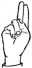 На ћирилици написано КОСТА ТОНЧИЋ састоји се из 11 слова [?]. Исписано ћириличном једноручном азбуком за глувонеме: